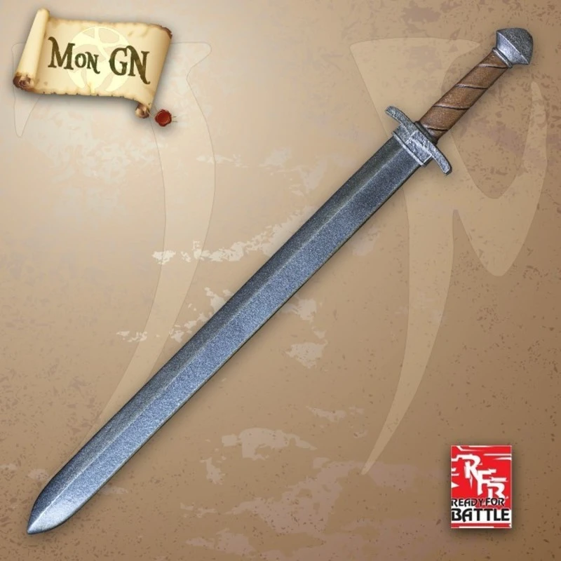L’épée Bandit de marque Ready For Battle est une épée à double tranchant en latex hybride avec une poignée moulée. L’épée fait 75 cm de long au total.