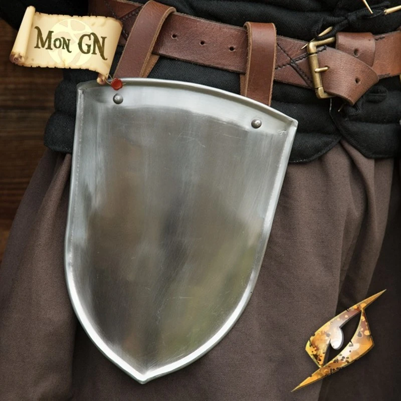 Le bouclier de ceinture du scout est conçu pour être simple, vous donnant la liberté de personnaliser le costume de votre personnage en l’associant à une multitude de styles. Ce bouclier ne nécessite pas non plus d’assistance pour l’équiper, car il est très facile à mettre et à enlever. Fabriqué en acier doux galvanisé d’une épaisseur de 1 mm, avec des sangles et des raccords en cuir de première qualité, cette pièce d’armure est conçue pour résister à l’épreuve des GN ou d’une reconstitution médiévale accompagné d’un entretien régulier du cuir et de la partie métallique.