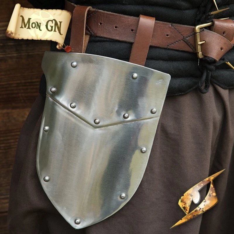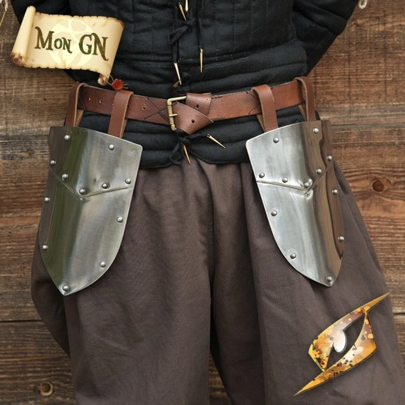 Deux plaques de protection en mĂ©tal chromĂ© avec de grands passants qui se fixe facilement sur n’importe quelle ceinture pour apporter une protection sur le haut des jambes et le bas des hanches.
