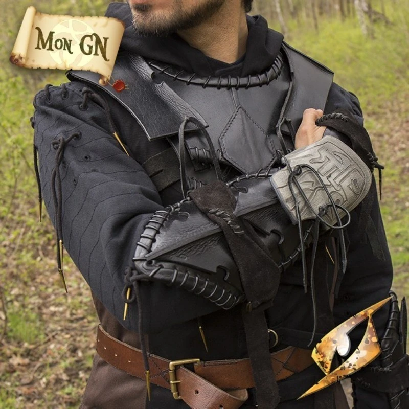 Cette pièce au style unique s’adapte facilement et se fixe fermemant au bras Ă l’aide de trois sangles en cuir suĂ©dĂ©. Le système de plaques de cuir indĂ©pendantes offre une très bonne protection tout en gardant une grande souplesse et sans encombrer les mouvement du bras ou des poignets.