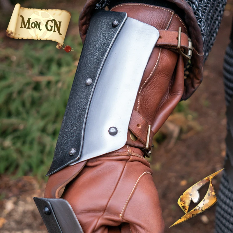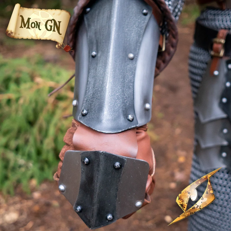 Ces brassards hybrides entre gantelets et demi-gantelets, offrent le confort et la liberté de mouvement que vous souhaitez. Associés à votre propre gant en cuir, ces plaques d’acier robustes protègent efficacement vos avants-bras et vos mains, tout en conservant le même design imposant d’inspiration nordique qui est commun à l’ensemble Dreki. Les brassards Dreki sont maintenus en place par deux lanières de cuir. Sur la partie main de la plaque, vous avez une bande de cuir dans laquelle vous passez vos doigts, pour plus de contrôle et de mobilité. Grâce aux plaques qui se chevauchent, aux rivets et à sa forme élancée, vous pouvez vous sentir comme un guerrier Nordique imaginaire, bravant la dureté du désert et tuant d’anciens dragons parmi les pics enneigés.