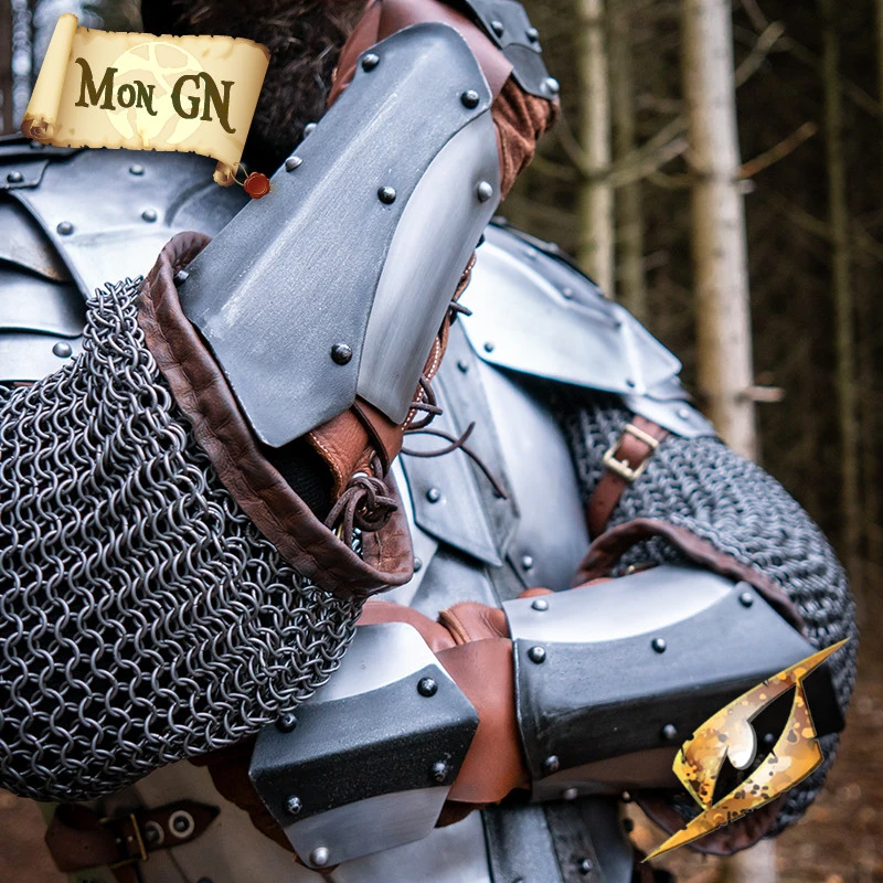 L’armure Dreki a deux couleurs, la première étant un métal poli mat et la seconde étant métal sombre, pour mettre en valeur les différents aspects de l’armure Dreki et montrer une fois de plus ses racines d’inspiration nordique. Fabriquée en acier doux poli d’une épaisseur de 1 mm et avec des sangles et des accessoires en cuir de première qualité, cette pièce d’armure est construite pour résister à des GN/LARP intensifs ou des reconstitutions avec un entretien régulier du cuir et de l’armure métallique.