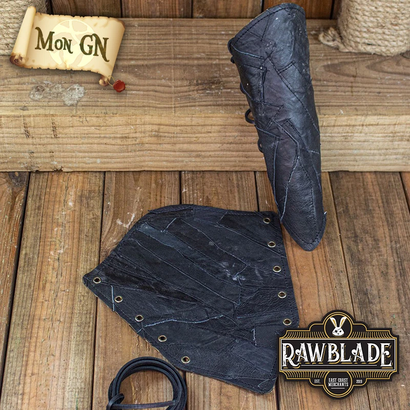 Les bracelets de chasseur sont fabriqués en cuir rapiécé de haute qualité, avec une doublure noire parfaitement cousue et terminée par des œillets en bronze avec un cordon en cuir.