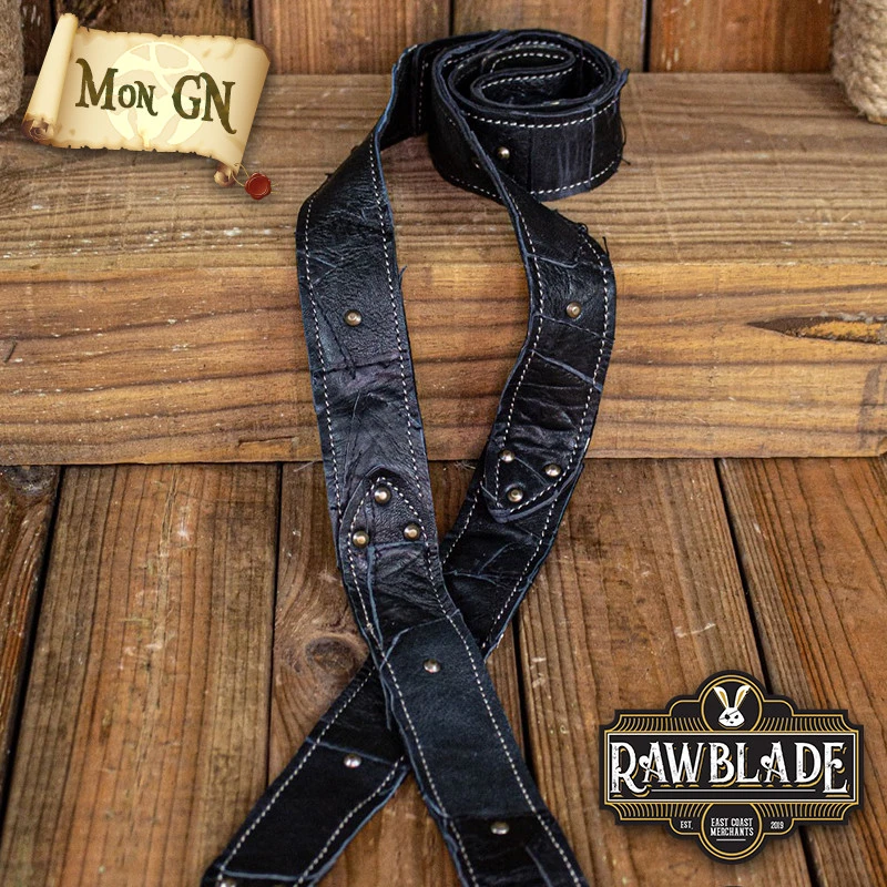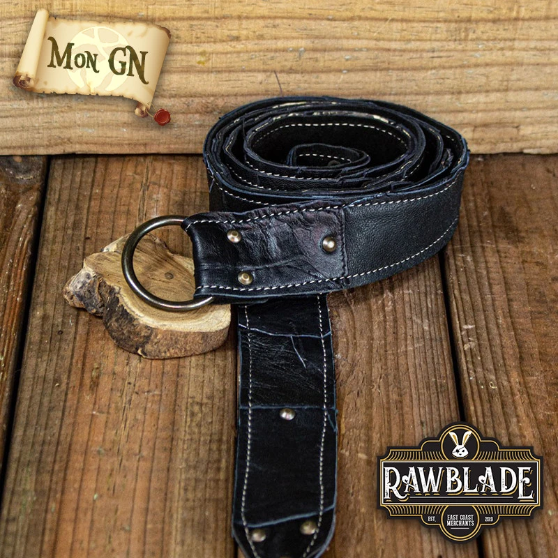 La ceinture de chasseur est fabriquée en cuir rapiécé de haute qualité, avec une doublure noire parfaitement cousue et finie avec des rivets en bronze et une boucle à anneau.