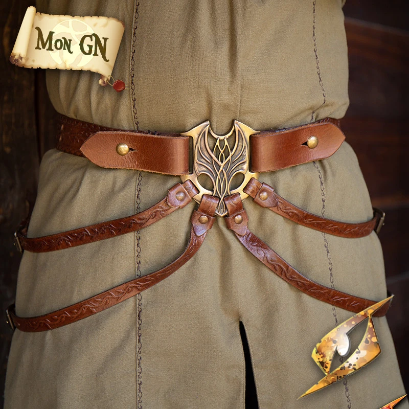 La ceinture elfique d’Epic Armoury est une ceinture en cuir magnifiquement travaillée, conçue spécialement pour votre caractère éthéré. Fabriquée en cuir marron avec un subtil motif inspiré de la vigne et une boucle en laiton entièrement coulée ornée d’un symbole elfique exquis, la ceinture est attachée par un bouton-pression de chaque côté de la boucle. Quatre autres lanières en cuir plus fines, deux de chaque côté, sont attachées à la boucle à l’avant et un anneau en laiton à l’arrière, à des fins décoratives ou pour des raisons pratiques telles que l’accrochage de vos accessoires. Une entretoise à l’arrière avec deux petits crochets vous permet d’ajuster la taille pour un ajustement parfait. Ce vêtement est une affirmation gracieuse mais forte de la fantaisie ; un élément absolument essentiel pour la confection de votre kit LARP ! Disponible en trois tailles différentes.