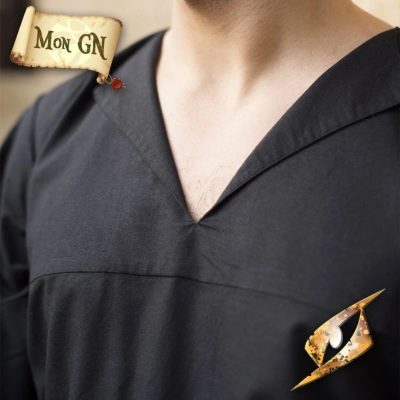 La chemise Godfrey est un vêtement ample en coton léger, conçu pour le confort et le style. Elle tombe juste au-dessus de la hanche et est munie d’un col subtil le long de la ligne de décolleté en V. Les manches sont conçues pour donner un look ample qui convient à un large éventail de classes de personnages et de carrières, de la fin du Moyen Âge à la Renaissance. Un cordon de coton est tendu aux poignets pour éviter que le tissu ne soit trop serré. Il est conçu pour s’adapter facilement à l’intérieur d’une paire de gants ou de gantelets.