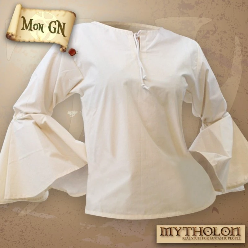 Ce chemisier en coton très lĂ©ger s’Ă©largit sur les poignets. Il est idĂ©al Ă combiner avec des jupes, des robes et des vestes. Il se ferme avec un lacet sur l’avant.