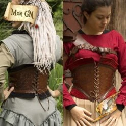 Le Corset Margot est conçu en cuir pour protéger l’abdomen tout en vous donnant de l’allure sur le champ de bataille. L’ajustement du corset est modifiable en serrant le cordon en cuir sur le devant et celui à l’arrière et en ajustant les deux lanières de cuir sur les côtés.