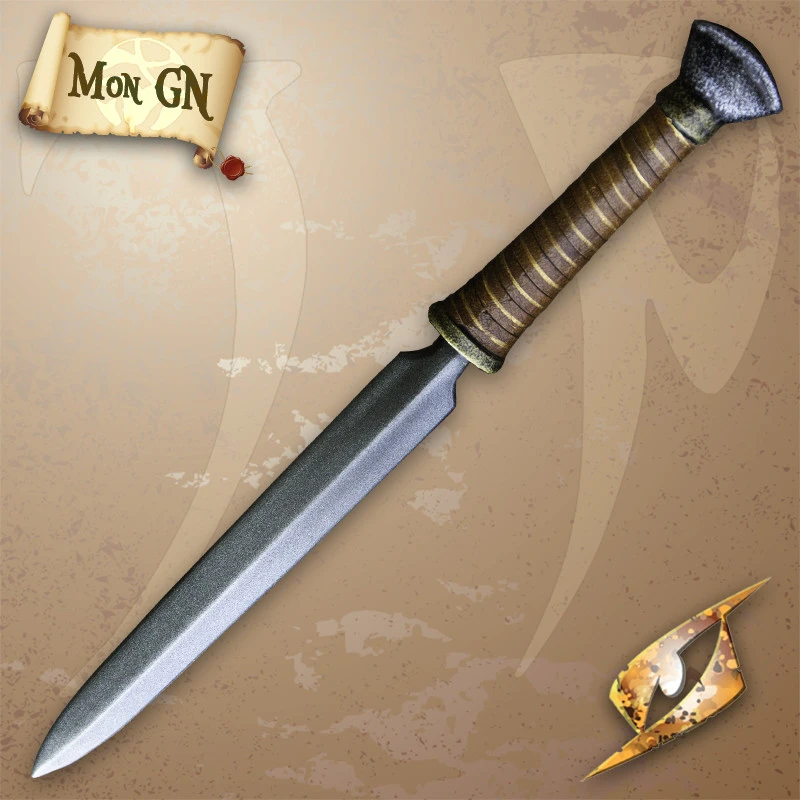 Que votre personnage de GN/LARP soit un soldat loyal, un prêtre ou un traître, il est écrit dans la pierre et les hiéroglyphes que la dague du désert en mousse est le couteau parfait pour vous. Bien qu’il présente une ressemblance remarquable avec le couteau de cérémonie retrouvé dans la tombe du grand pharaon Toutankhamon, ce poignard n’est pas fabriqué dans un matériau extraterrestre. Elle est en fait fabriquée en mousse à cellules fermées durable autour d’un noyau en fibre de verre et finie avec un revêtement en latex solide qui résistera aux combats de GN et aux abus. La dague en mousse de 46cm est doté d’une lame à deux tranchants avec une arête centrale, sans garde transversale et avec un pommeau aplati, et le manche est enveloppé de cuir, garni d’une seule ligne dorée fine. Cette dague vous donnera l’impression d’appartenir au désert lorsque vous préparerez votre kit de GN/LARP.