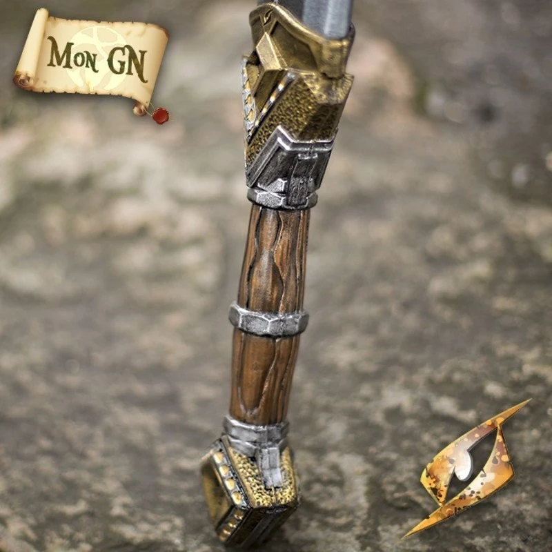 L’épée de nain double tranchant de marque Epic Armoury est une épée à double tranchant en latex hybride avec une poignée détaillée. L’épée fait 105 cm de long et a une lame droite de 82 cm inspirée par les armes de la race naine mythologique.