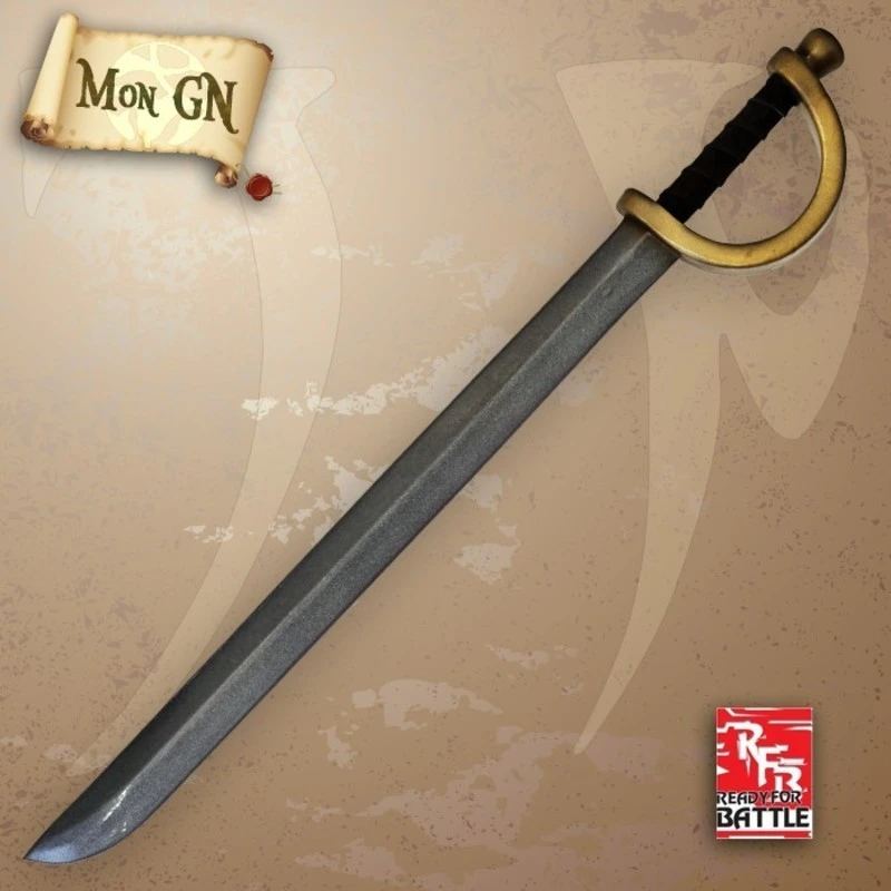 C’était un grand pirate, heu … capitaine de la marine marchande, qui a décidé de devenir rentier grâce aux économies qu’il s’est faites. Il avait gardé sa lame en souvenir, mais sa nouvelle femme a forcé le capitaine à vendre. Ah ah ! C’était un sacré loup de mer et son épée est une vraie légende. On dit que tous les pirates ont adopté ce style d’armes pour lui rendre honneur…