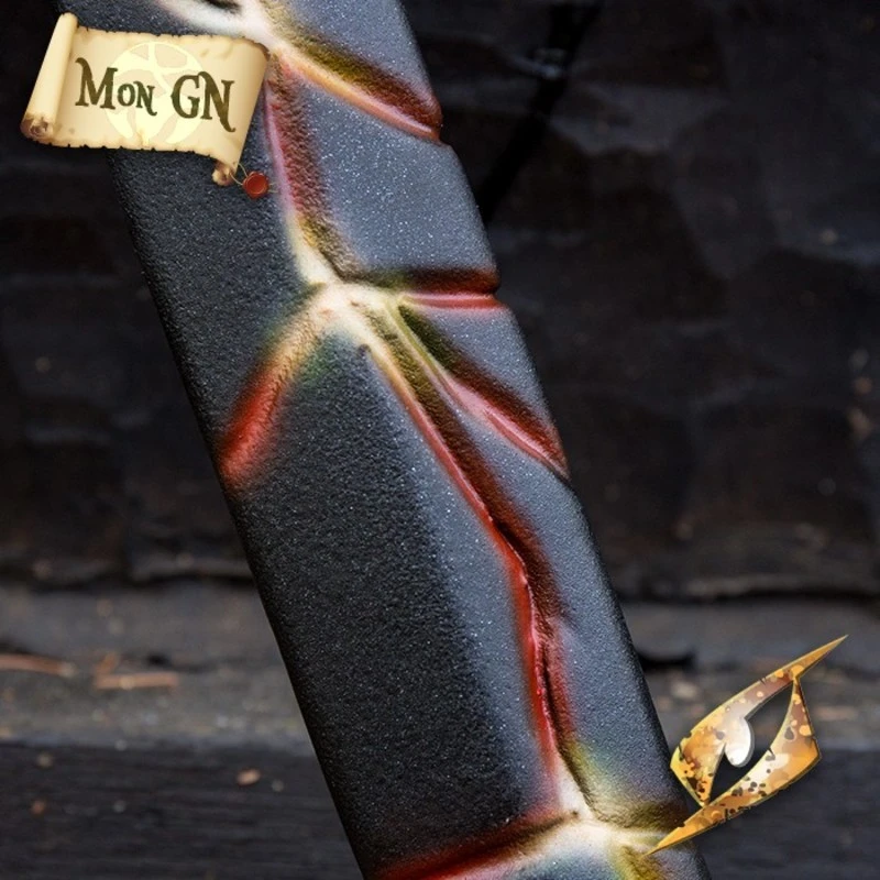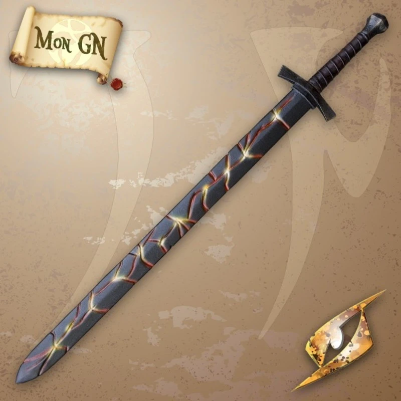 L’épée du Fantassin Inferno de marque Epic Armoury est une épée à double tranchant en latex hybride avec une poignée détaillée. L’épée fait 100 cm de long et sa lame est couleur noir et lave.