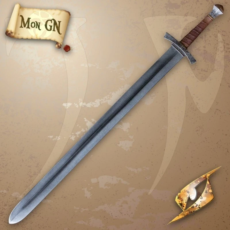 L’épée du Fantassin de marque Epic Armoury est une épée à double tranchant en latex hybride avec une poignée détaillée. L’épée fait 110 cm de long et a une longue lame droite de 87 cm.