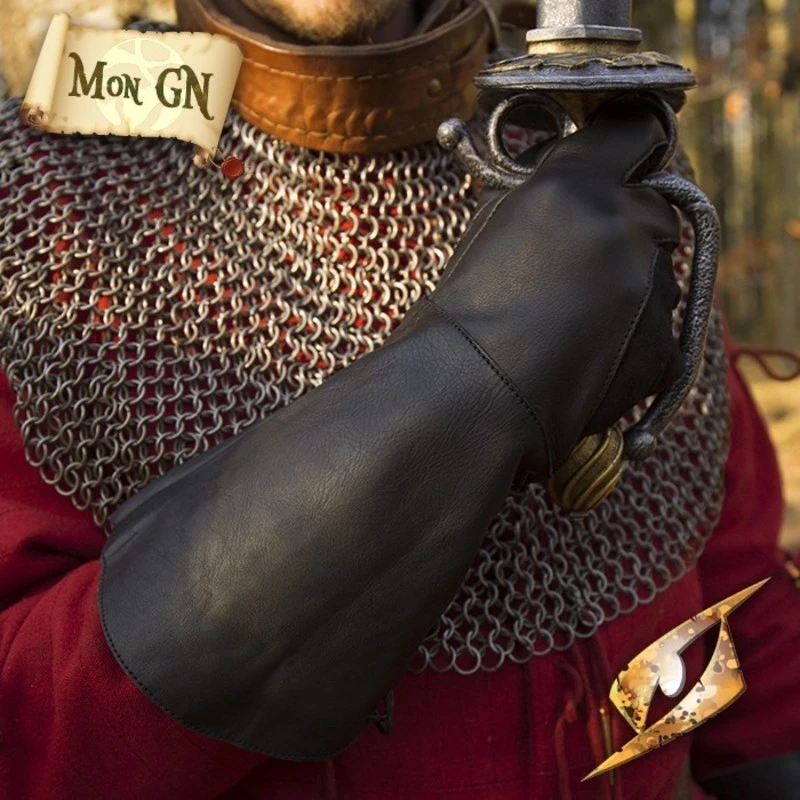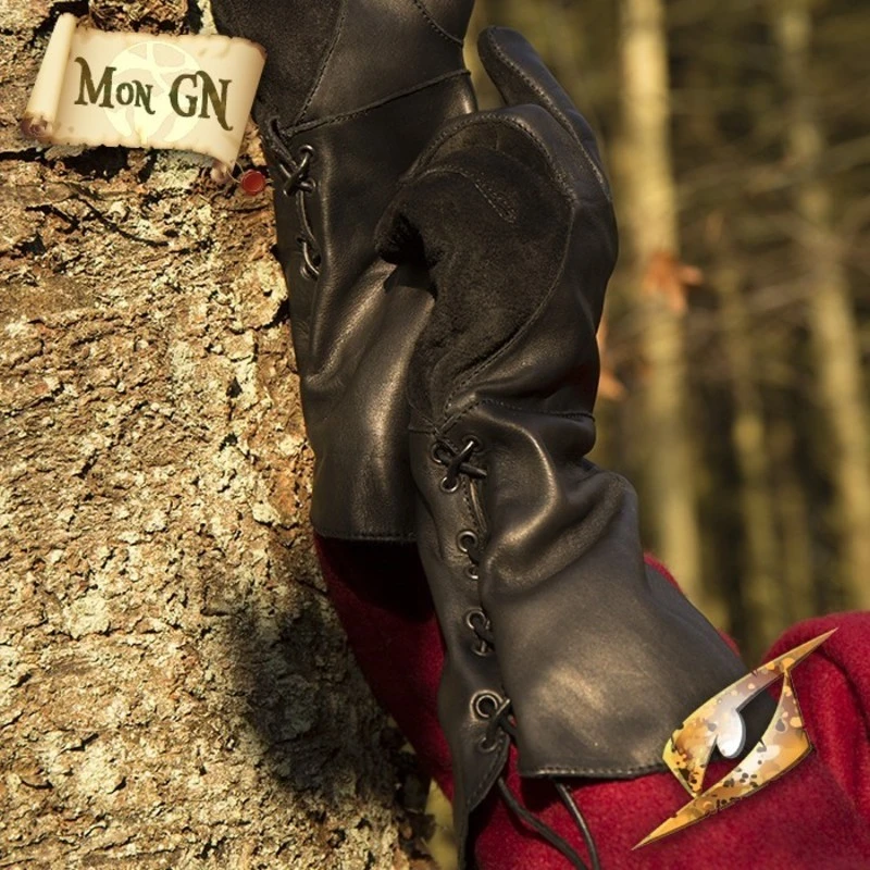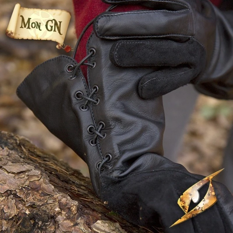 Gants Faucon en cuir sont fabriquĂ©s Ă partir de cuir vĂ©ritable. Ils vous permettront de tenir votre arme d’une main ferme durant un combat. Ces gants peuvent ĂŞtre ajustĂ© sur l’avant-bras Ă l’aide d’une cordelette.