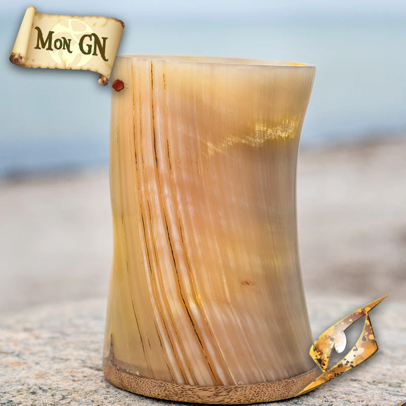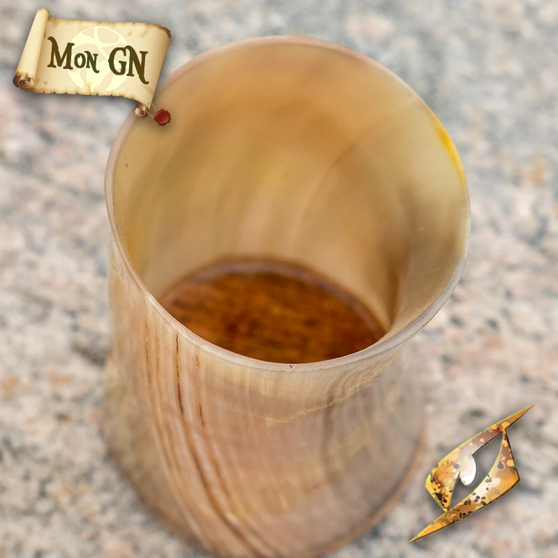 Quel que soit le style de joueur, le gobelet en corne Aventurier est toujours utile. Chacun de nos gobelet en corne est sélectionnée à la main, polie à la main et coupée à la main. Comme les Vikings, nos artisans polissent, nettoient et scellent soigneusement chaque récipient pour un usage sûr. Nos gobelets d’époque sont inodores et constituent l’accessoire idéal pour boire de l’hydromel. Chaque gobelet présente de riches nuances de couleurs et des formes qui lui sont propres. Nos gobelets en corne naturelle sont extrêmement durables lorsqu’ils sont correctement entretenus et peuvent accueillir des boissons à température ambiante, comme l’eau ou la bière. Ils sont facilement transportable et parfait pour les GN/LARP ou les banquets médiévaux.