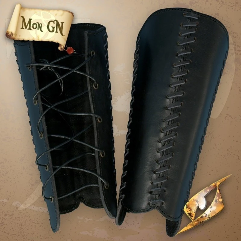 Grèves d’Ecuyer en cuir de marque Epic Armoury.