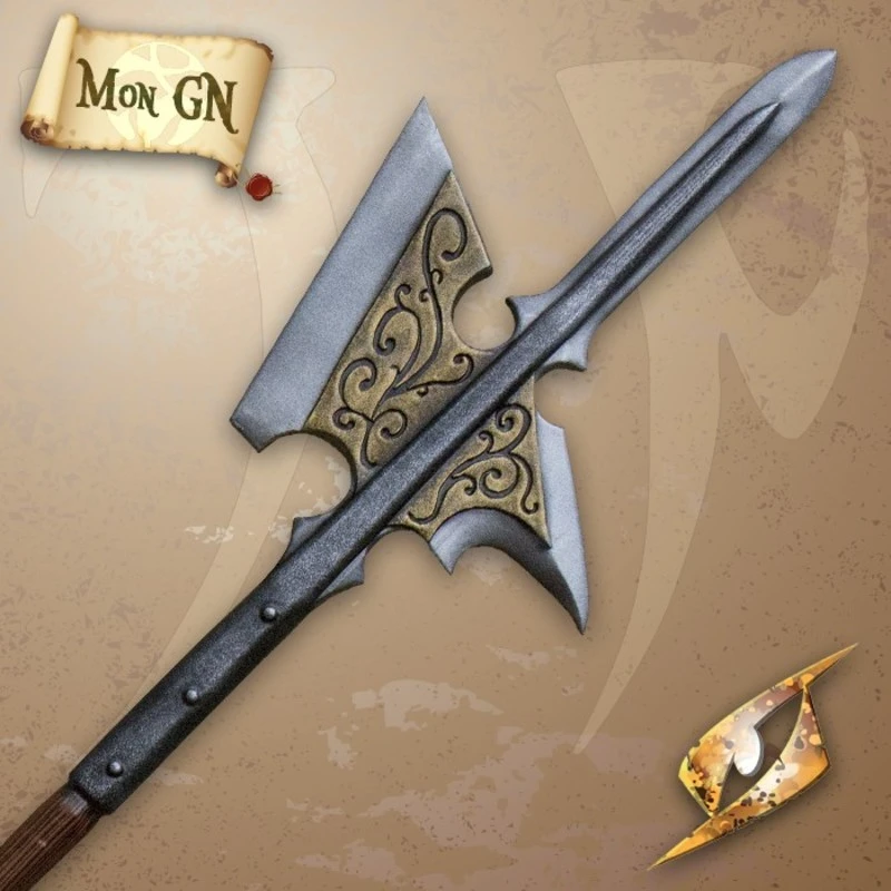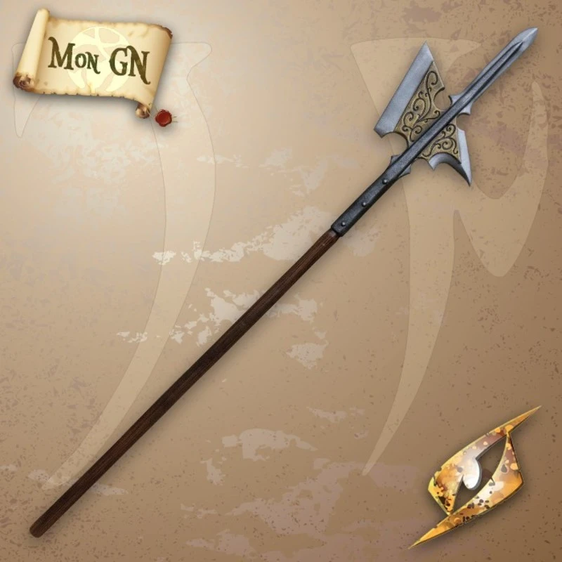 La tête de hâche comme Hallebarde a une longue lame pour hacher, une longue lance pour transpercer, et une pointe en griffe pour accrocher.