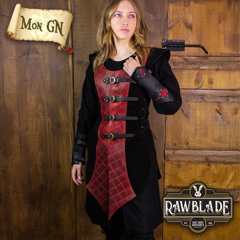 Le Jerkin en cuir long des hautes terres combine parfaitement du cuir fendu de haute qualité avec du cuir brodé en diamant de 1,2 mm pour plus de solidité. Cet article est doté de boucles robustes et sa finition est le complément parfait pour offrir protection et élégance.