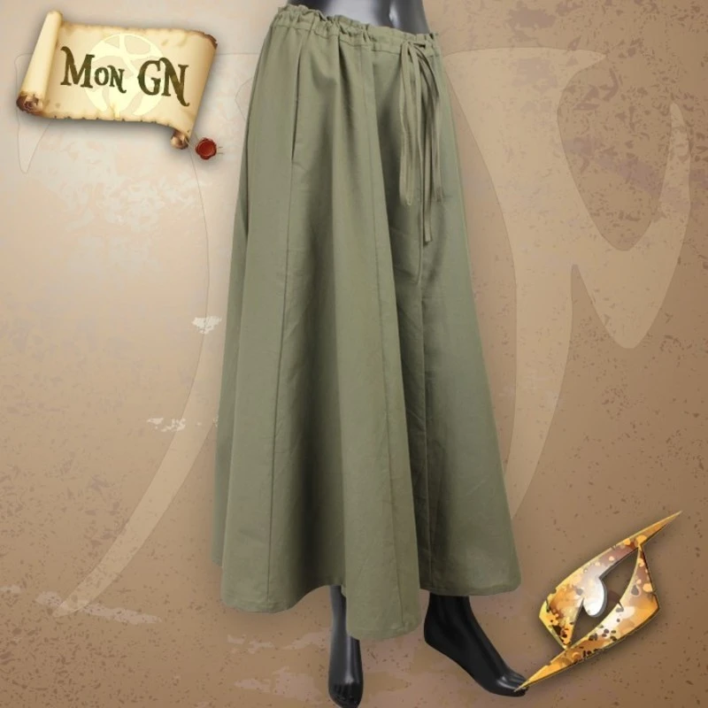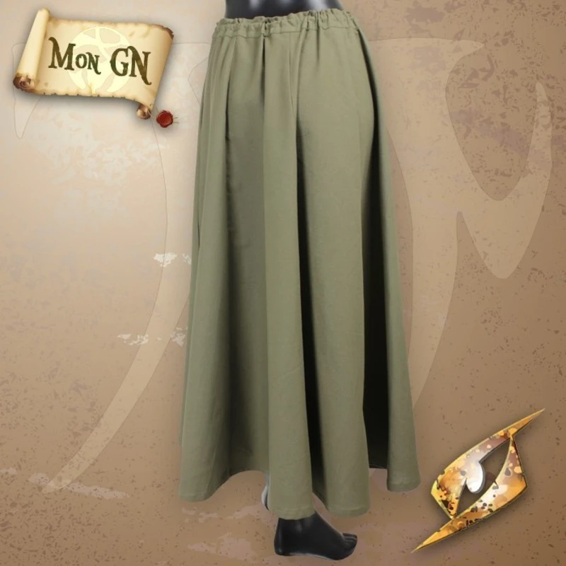 Jupe descendant jusqu’aux chevilles, elle se ferme Ă la taille avec une cordelette. Elle possède des poches « invisibles » des deux cotĂ©s.