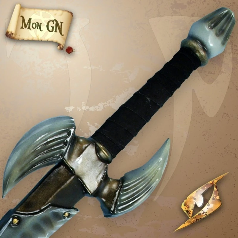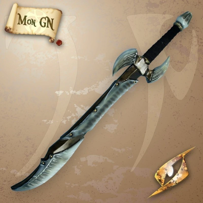 La lame de cette épée imitation os mesure 66cm et sa poignée 15cm.