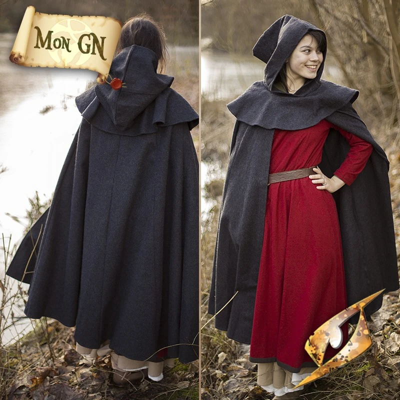 Le manteau en laine est un manteau lourd et Ă©tanche avec une capuche et des Ă©paules bien ajustĂ©es sous un manteau d’Ă©paule. La cape protège des intempĂ©ries de la tĂŞte jusqu’au milieu du mollet. L’ajout d’un manteau sur les Ă©paules ajoute de la chaleur et une protection supplĂ©mentaire pour le torse et autour de l’ouverture de la cape. FabriquĂ© Ă partir d’un tissu de laine mĂ©langĂ©e Ă©paisse, il permet de rester au chaud et Ă l’aise dans la neige ou la pluie.