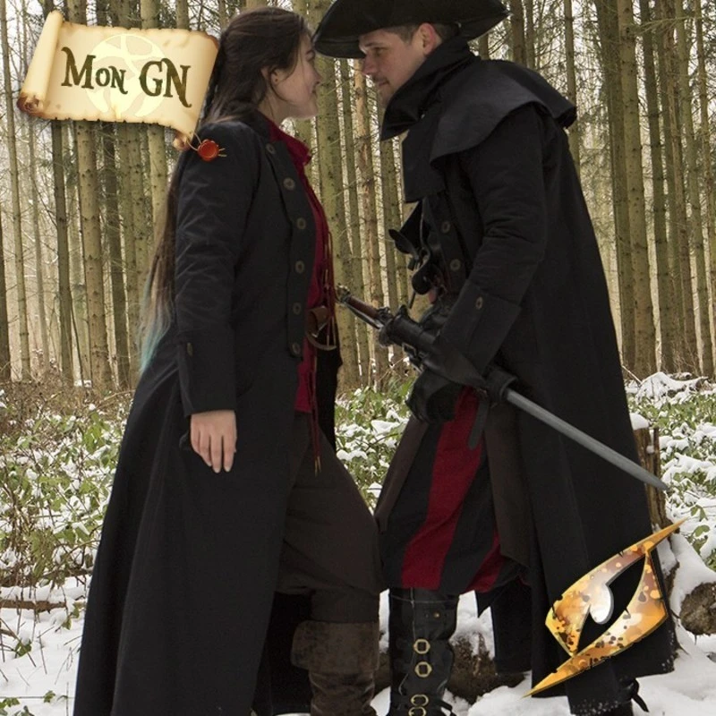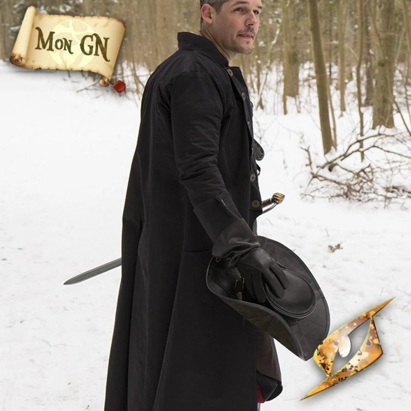 Portez ce manteau ouvert ou fermé avec ses six rangées de boutons sur le devant. La partie haute (col et épaule) est amovible et se fixe à la troisième rangée de boutons.