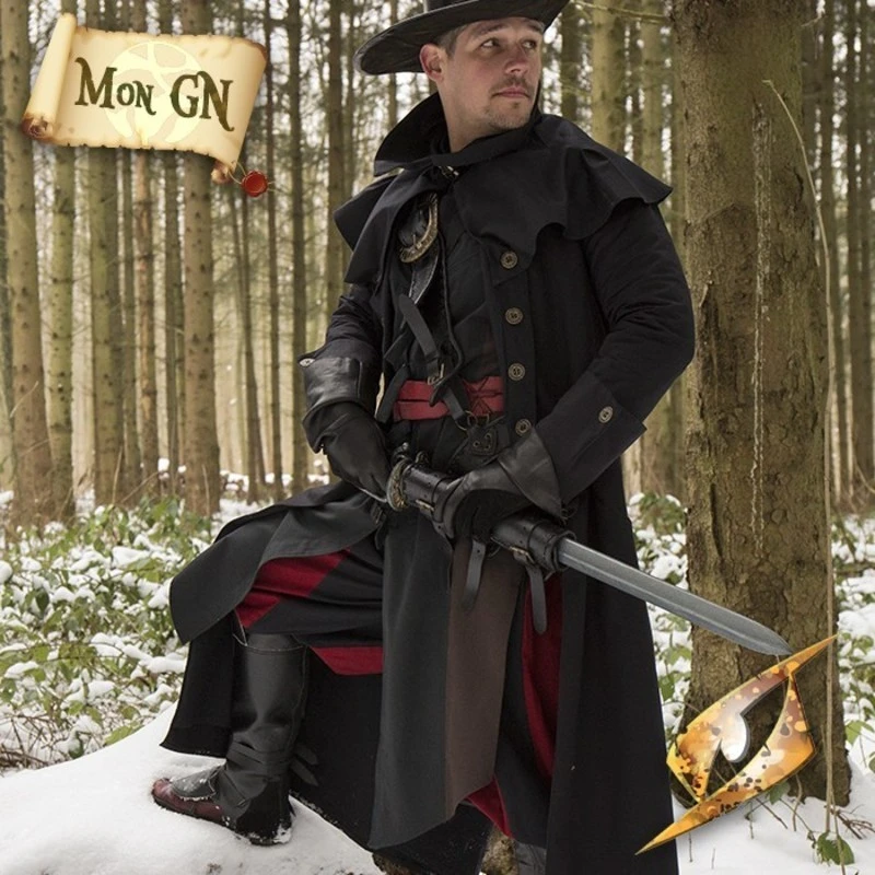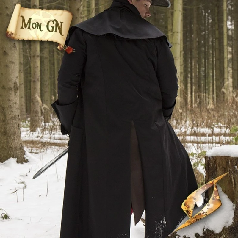 Le manteau Hellsing est épais et il possède des manches longues. C’est un manteau impressionnant conçu pour les chasseurs. Il possède une col et il descend jusqu’à mi-mollet. Ce manteau est conçu pour vous protéger des éléments tout en ajoutant une apparence sérieuse et professionnelle. Le manteau est fait de toile et de cuir, et il est embelli avec une doublure contrastante. Il est conçu pour laisser une grande liberté de mouvement, y compris à cheval.
