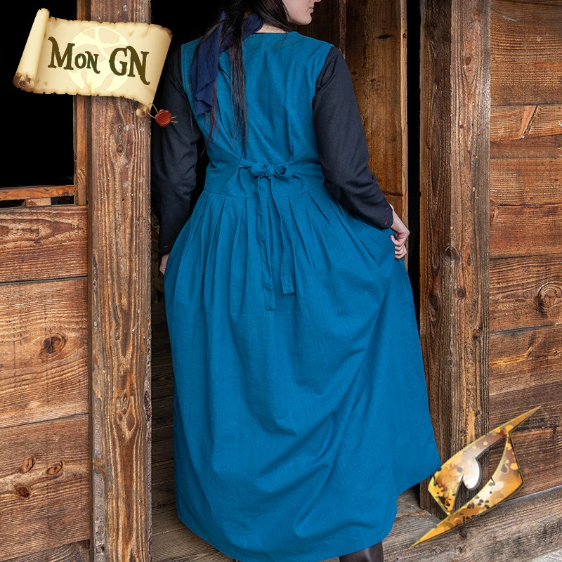 La robe Adelina est une robe de printemps et d’Ă©tĂ© parfaite pour tout Ă©vĂ©nement mĂ©diĂ©val ou renaissance. Cette robe en coton grossièrement tissĂ© est fabriquĂ©e Ă partir de tissu irrĂ©gulier pour donner l’apparence d’un tissu filĂ© Ă la main. Cette robe dĂ©contractĂ©e possède un corsage ajustable et ajustĂ© avec des liens en ruban Ă la taille pour accentuer la forme fĂ©minine. Cette robe d’Ă©poque est un modèle intemporel au style polyvalent qui peut s’adapter Ă tous les costumes. La robe Adelina est une robe longue avec un dĂ©colletĂ© en V qui est Ă la fois flatteuse et d’aspect historique.
