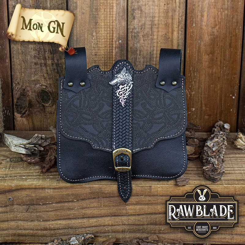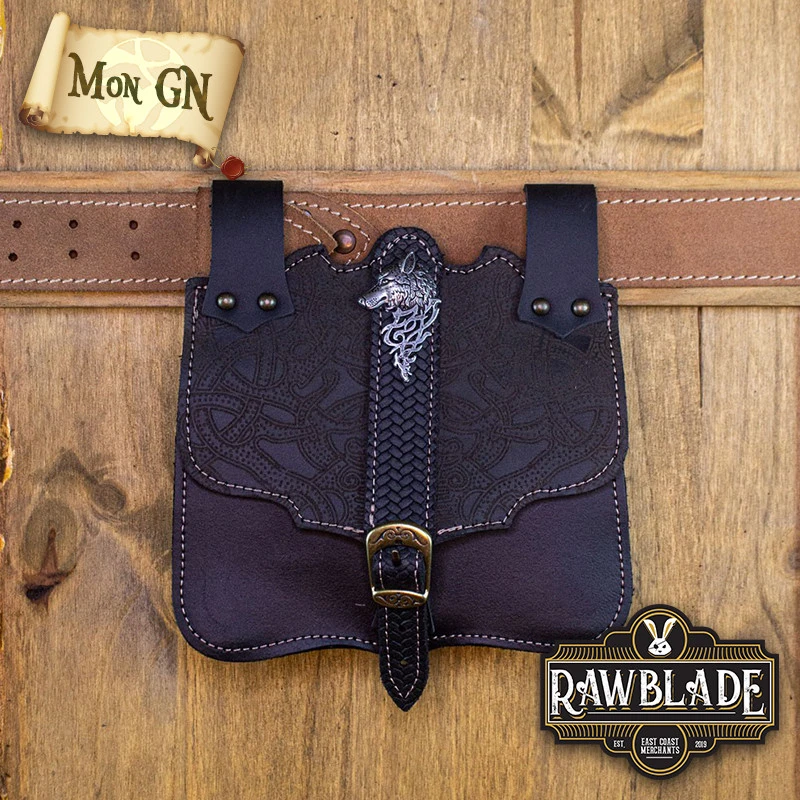 Le sac du loup solitaire, est un sac en cuir de haute qualité avec un bel ornement en métal et une boucle de fermeture. De grands passants permettent de le fixer à une ceinture.