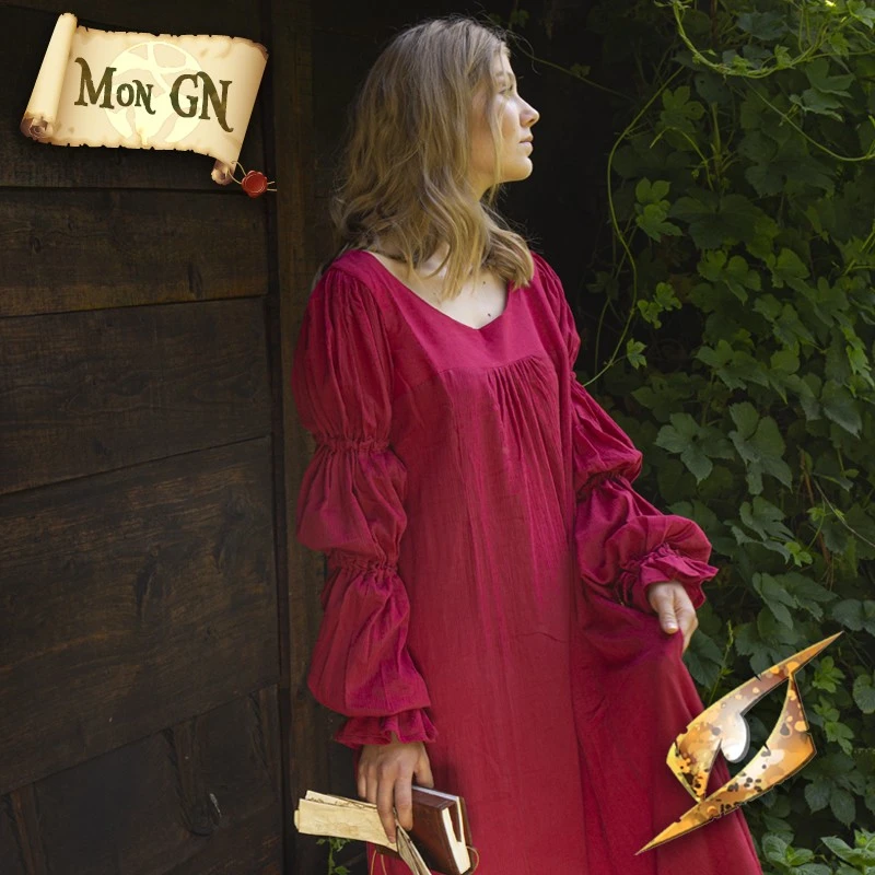 Les manches plissées de cette sous-robe sont longues et nouées autour du biceps, du coude et du poignet avec des cordons en coton. Avec son design élégant qui donnera à une robe simple une couche de base de style, cette sous-robe est parfaite pour vos LARP/GN, Cosplays ou reconstitutions.