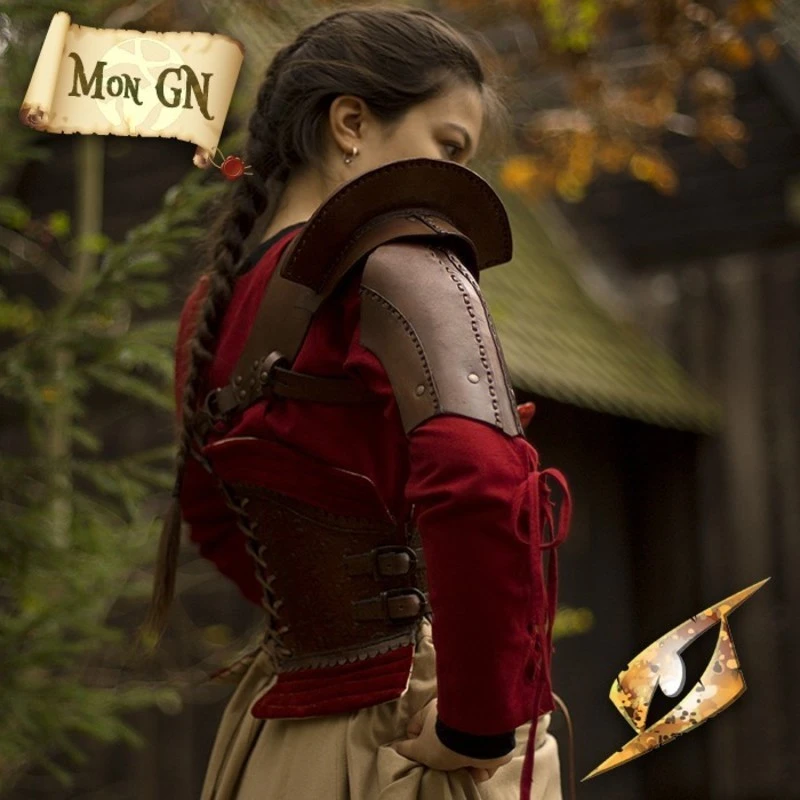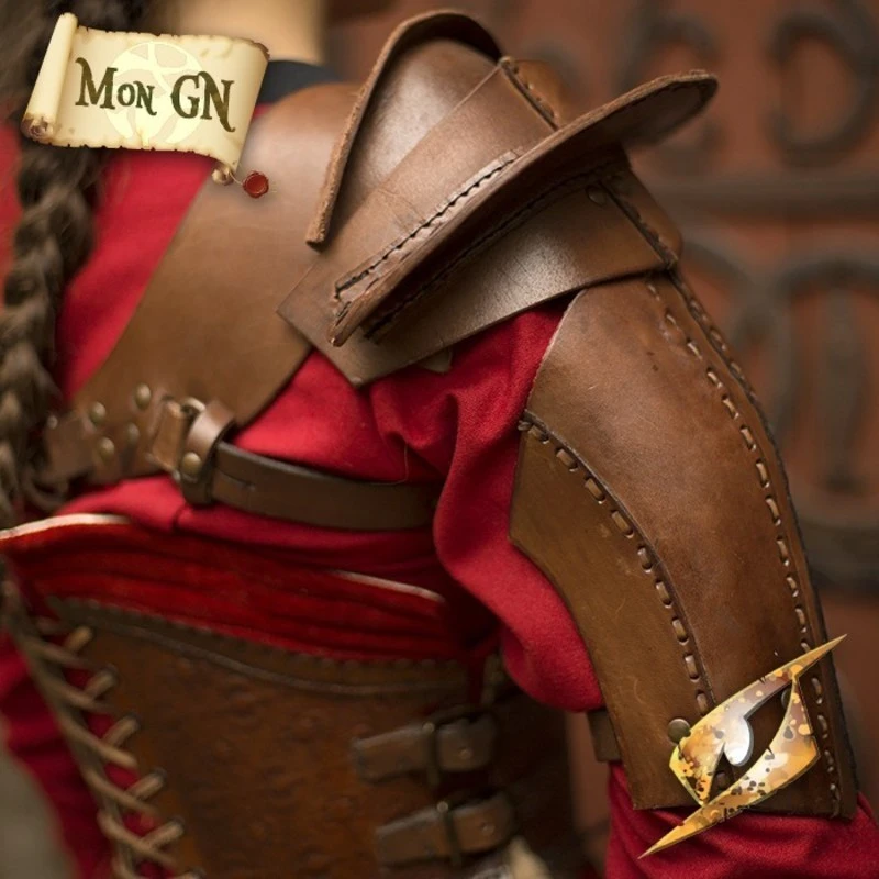 Cette spallière de cuir peut être porté indifféremment sur l’épaule gauche ou droite et s’adapte facilement à son porteur grâce à un système de harnais. Portée seule façon gladiateur ou combinée, elle est idéal pour donner du style à votre personnage préféré.