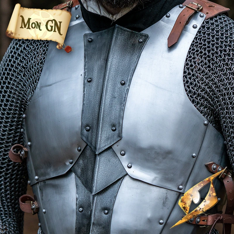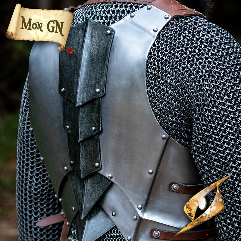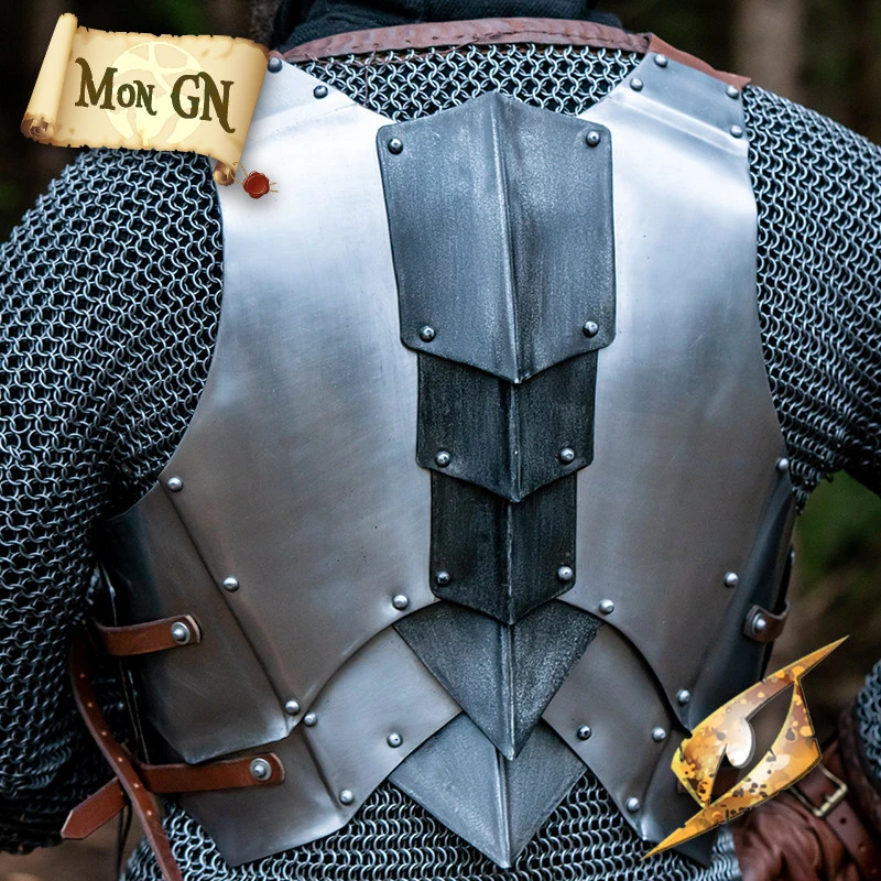L’armure Dreki a deux couleurs, la première étant un métal poli mat et la seconde étant métal sombre, pour mettre en valeur les différents aspects de l’armure Dreki et montrer une fois de plus ses racines d’inspiration nordique. Fabriquée en acier doux poli d’une épaisseur de 1 mm et avec des sangles et des accessoires en cuir de première qualité, cette pièce d’armure est construite pour résister à des GN/LARP intensifs ou des reconstitutions avec un entretien régulier du cuir et de l’armure métallique.