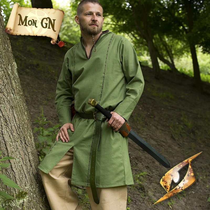 La tunique elfique d’Epic Armoury est une chemise Ă manches longues brodĂ©e conçue dans un style elfique, avec une Ă©troite encolure en V. Cette tunique, qui va des Ă©paules aux genoux, est faite de coton doux et teint. Elle peut ĂŞtre un costume Ă elle seule ou servir de base Ă un design plus complexe. DĂ©placez-vous facilement dans la forĂŞt grâce Ă une coupe en A sur le devant de l’ourlet, et soyez soulagĂ© de savoir que les poignets Ă©troits ne gĂŞneront pas votre arc elfique. Embellie par une broderie d’inspiration elfique et un liserĂ© assorti le long du cou, cette tunique elfique est une pièce essentielle et durable dans toute garde-robe costumĂ©e.